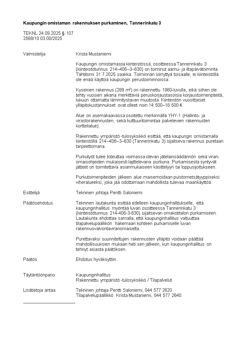 Pöytäkirja 24.09.2025/Pykälä 107
