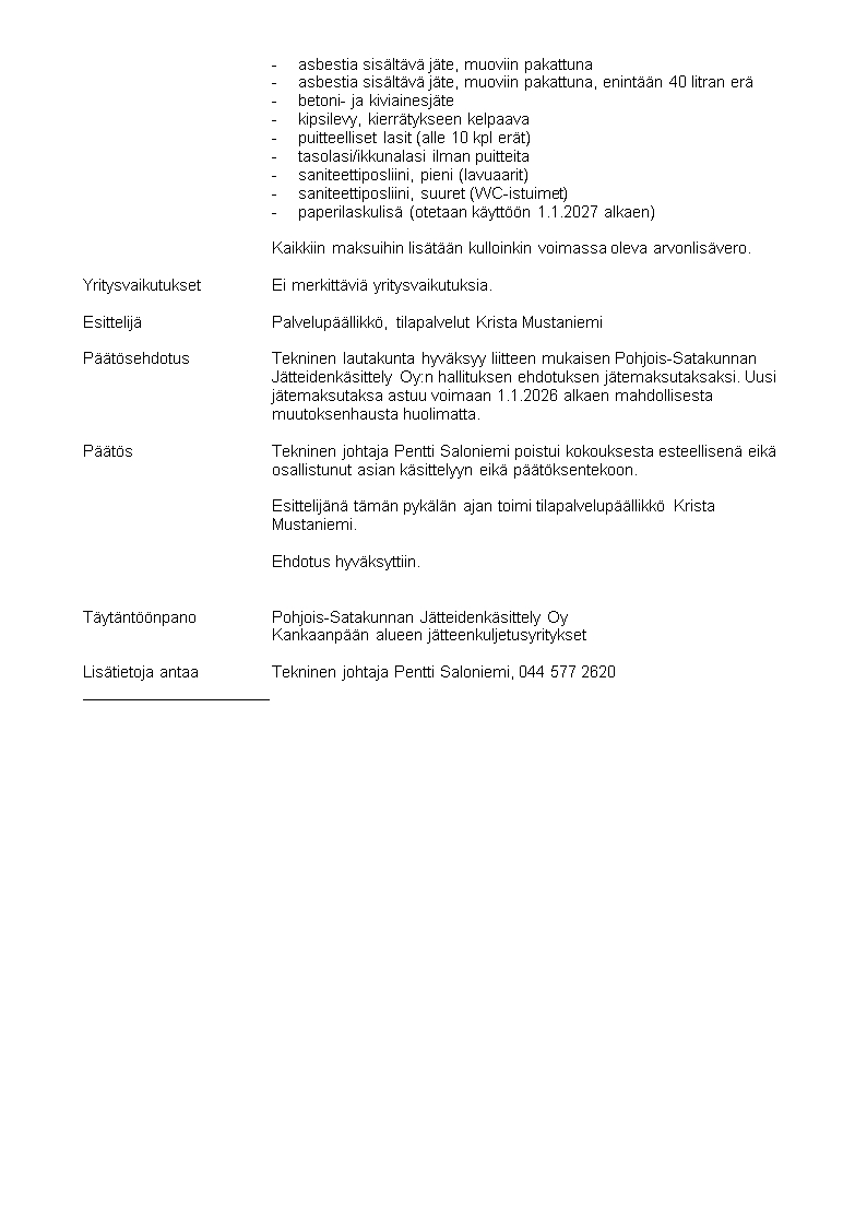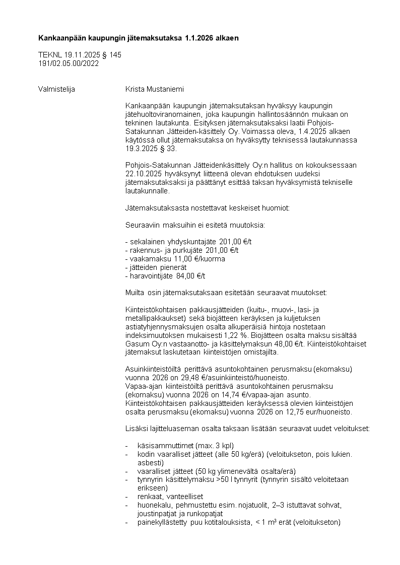 Pöytäkirja 19.11.2025/Pykälä 145